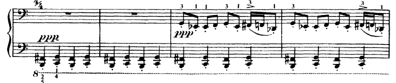 But let's return to Bulgarian dance. Its development reveals continuous lines of conflict. First, the asymmetrical rhythm is sustained by the left hand while the right-hand builds a melodic phrase. However, the right hand is not at the same pitch as the left hand. This is a beautiful example of the way Bartok uses polytonality, bitonality, and polymodality. Bitonality and polytonality mean that, in a long piece of music, the music develops from two or more simultaneous tonal principles. As if it followed two different orders at the same time. In the case of polymodality and bimodality, these are different modes.