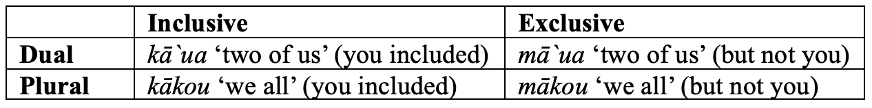 4. Inclusive (kākou) and exclusive "we" (mākou) in conversation