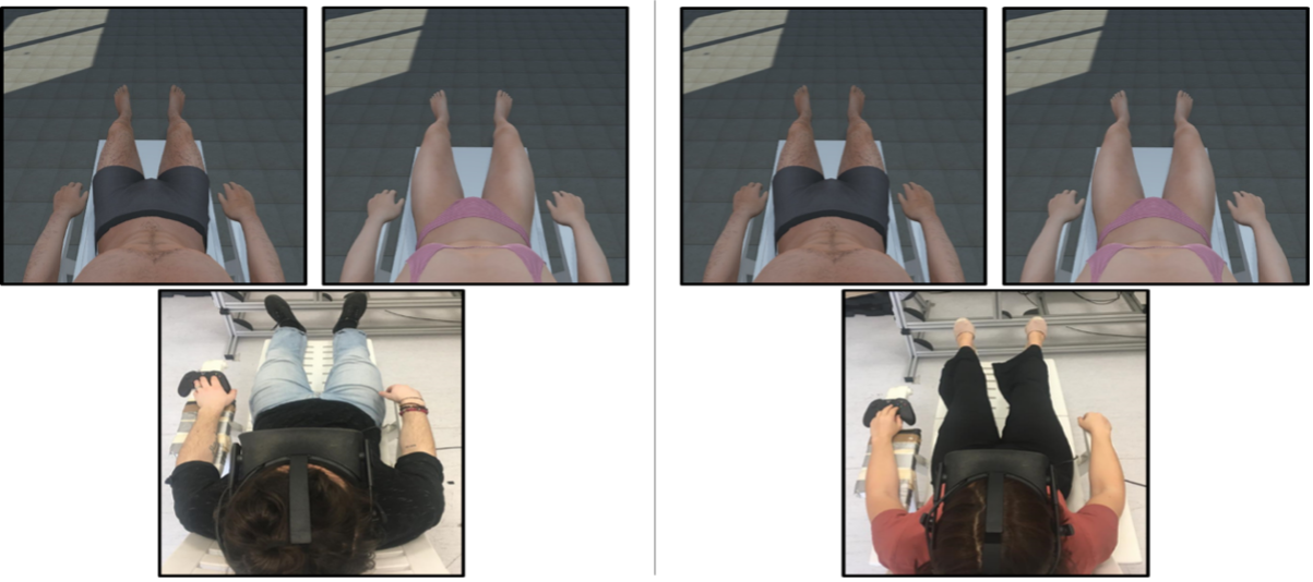 Experimental set-up used in Mello et al. (2022b) for testing the effect of body swap on social and intimate touch.